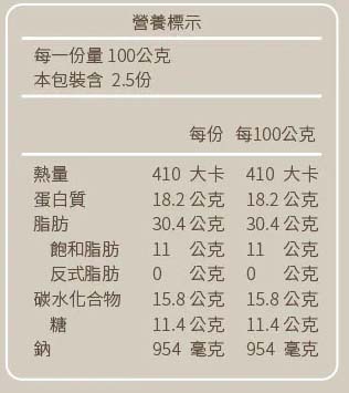 營養標示:請見包裝上標示