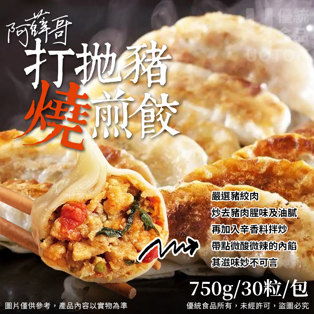 [優統食品]阿薛哥 打拋豬燒煎餃 -750g/約30顆/包