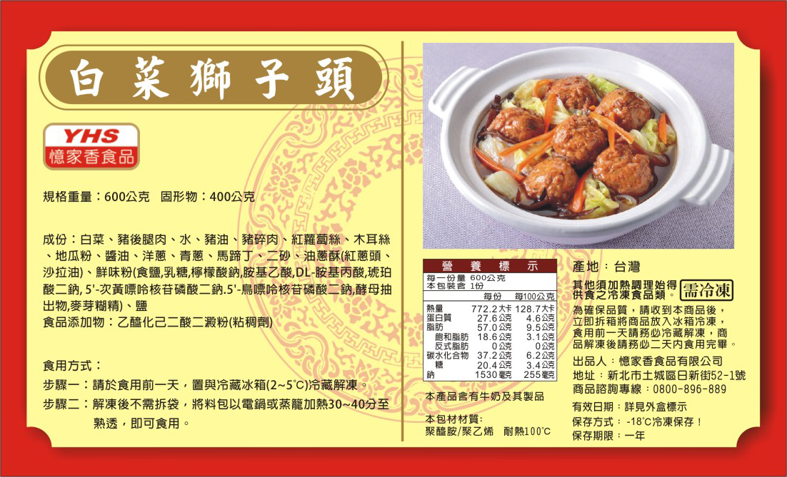 [優統食品] 年菜 白菜獅子頭 -600g/盒 6粒