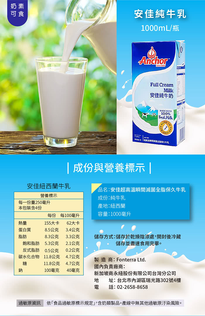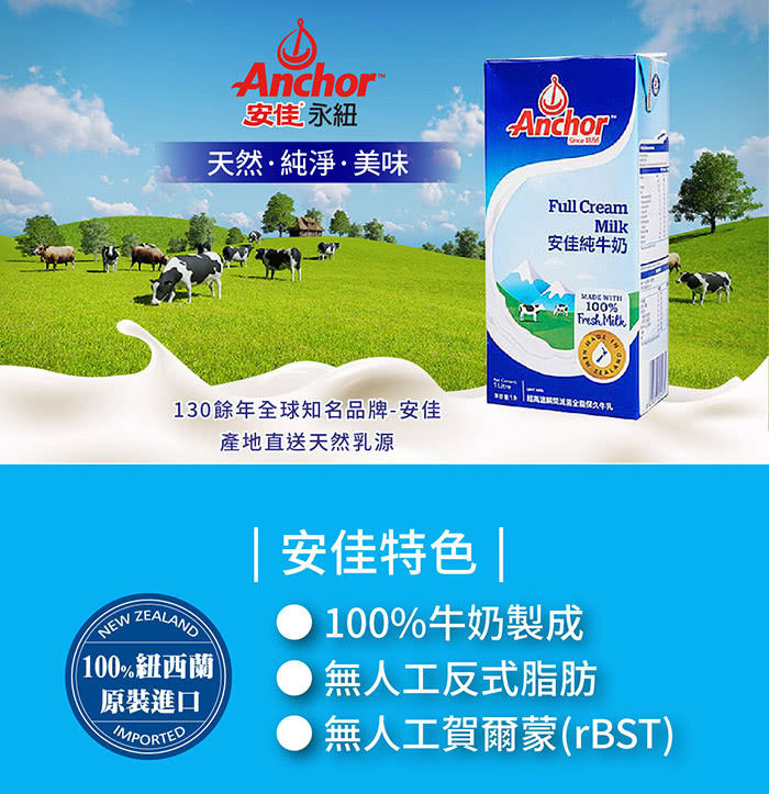[優統食品]Anchor安佳 紐西蘭純牛奶-1000ml/罐