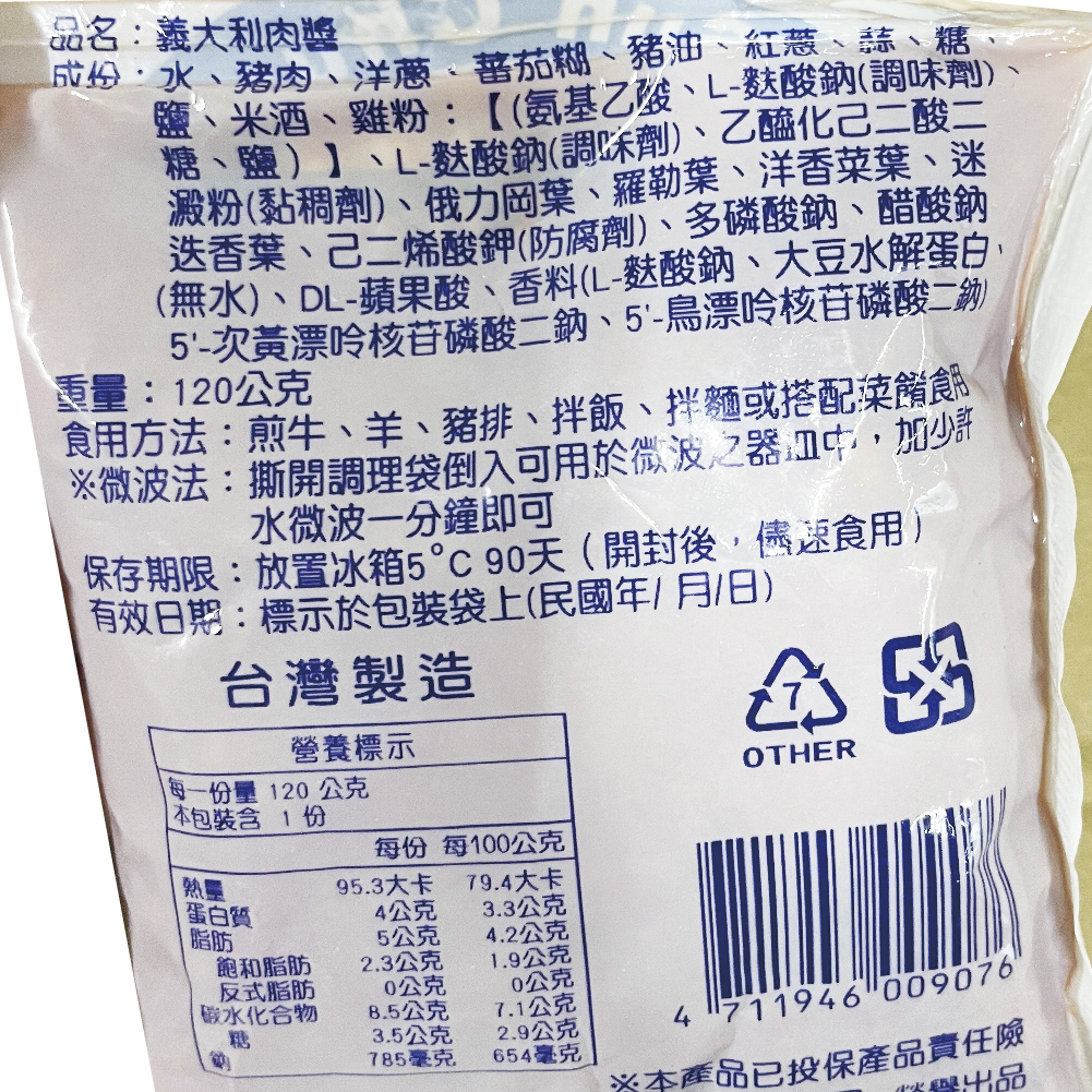- 道地口味的義大利麵醬,醬汁香醇、口感濃郁,最經典的義式肉醬口味,輕鬆在家煮出如大廚料理的極緻美味。