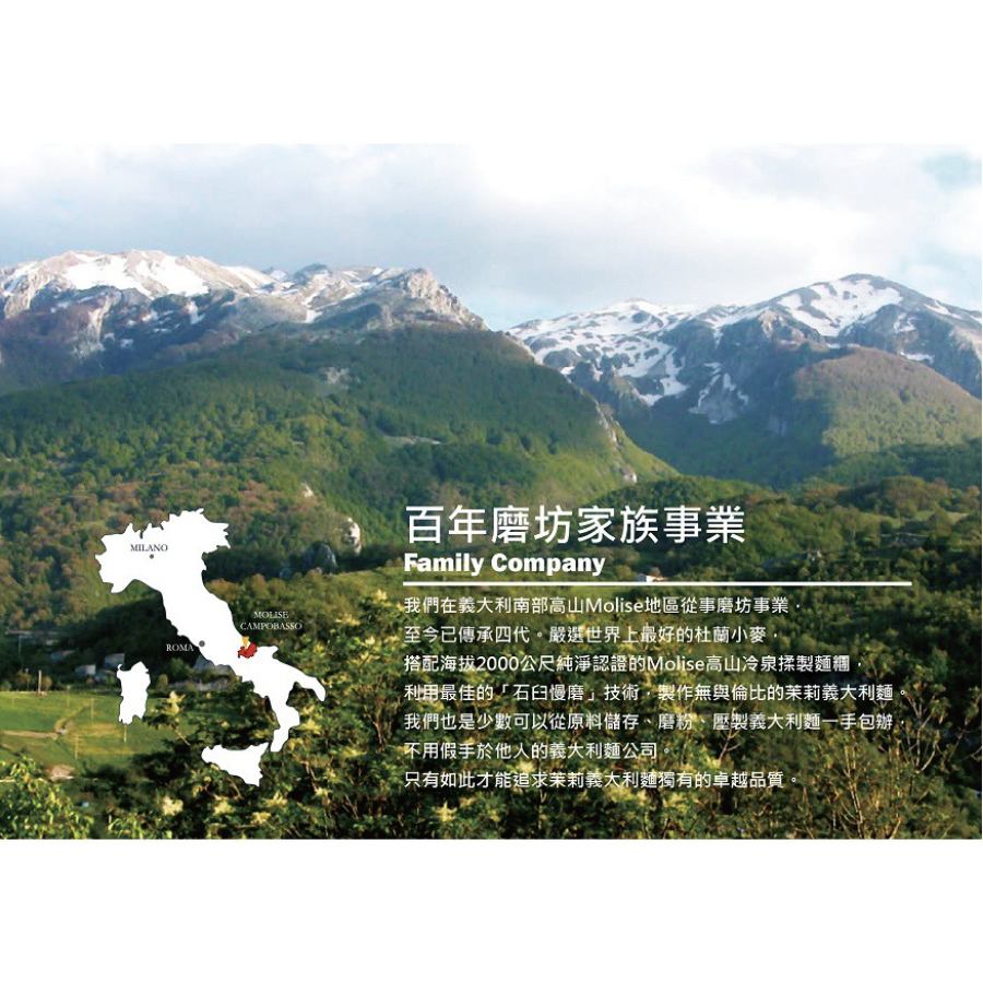 - 義大利100%杜蘭小麥,傳統石臼慢磨製粉 海拔2000公尺純淨認證的Molise高山冷泉揉製麵糰 仿古「銅模」(Borze Die)製作 麵體表面粗糙,更能吸附醬汁