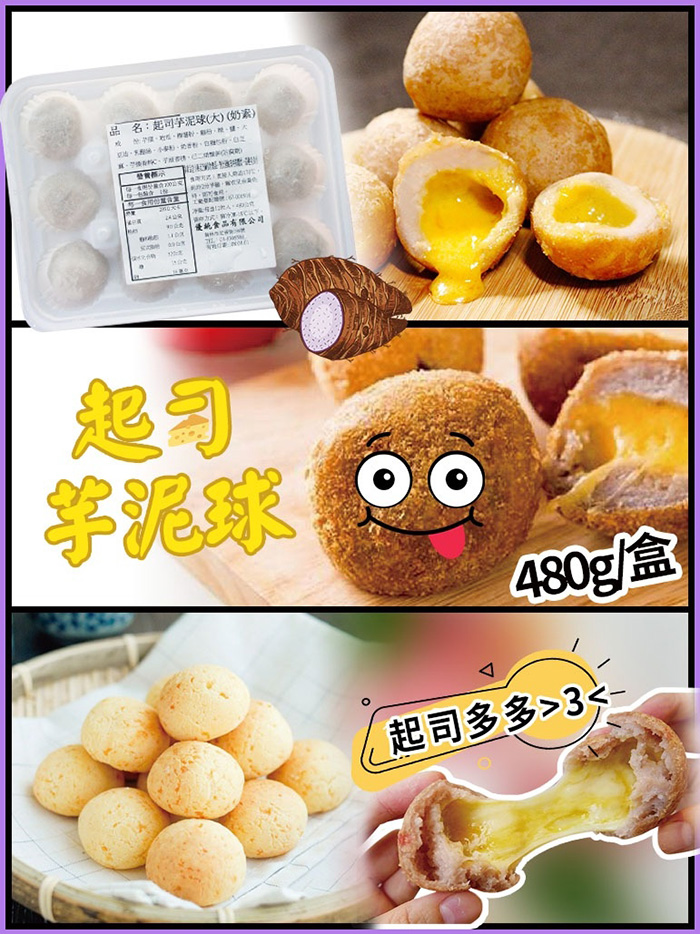 風味介紹:油炸後外皮酥脆,濃郁香醇的芋香,內餡加上會爆漿的起司,扎實又綿密順口。