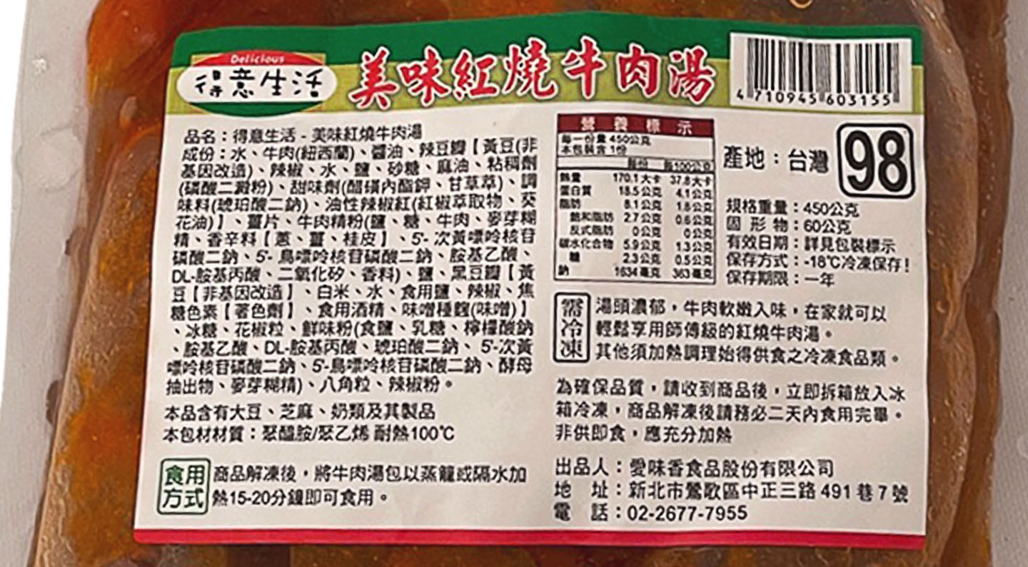 - 解凍後,將牛肉湯包以蒸籠貨隔水加熱方式,加熱15-20分鐘即可食用