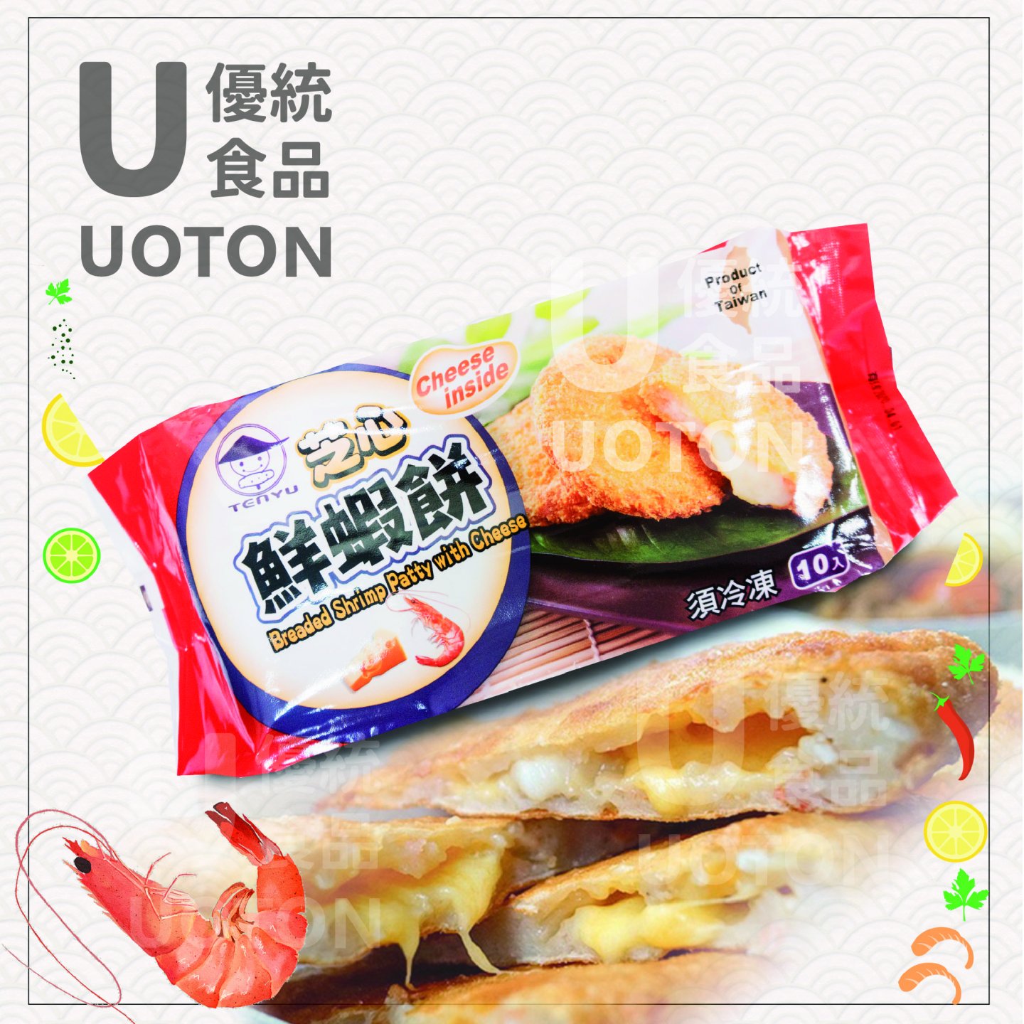 [優統食品]芝士鮮蝦餅 -10片/包